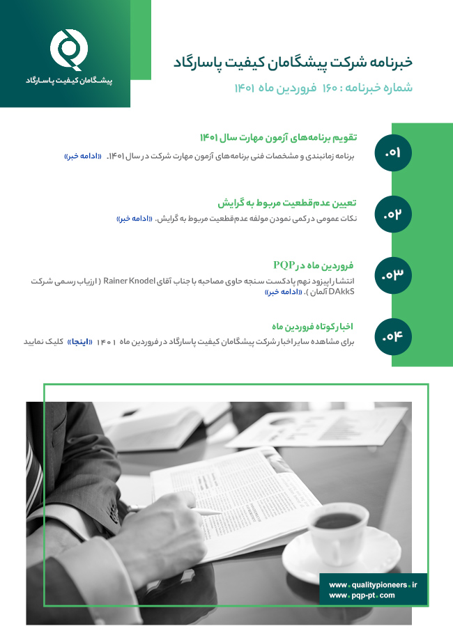 خبرنامه های شرکت پیشگامان کیفیت پاسارگاد